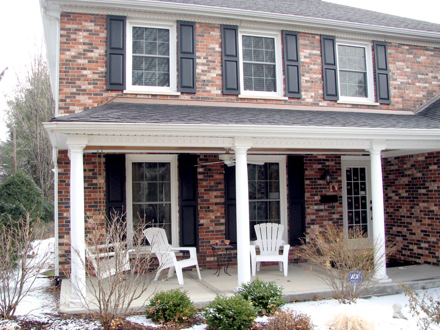 Composite Columns – New concrete slab, new soffits with dental trim molding roof to match with copper flashing.