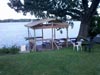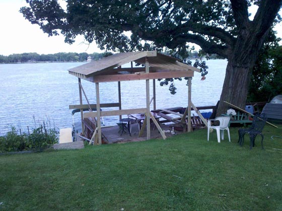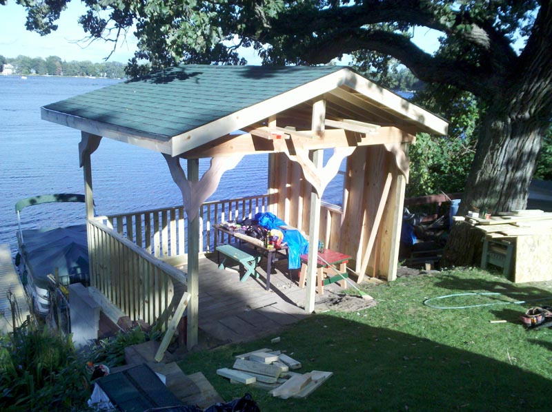Beautifully hand crafted wood gazebo nearby water in Wisconsin.